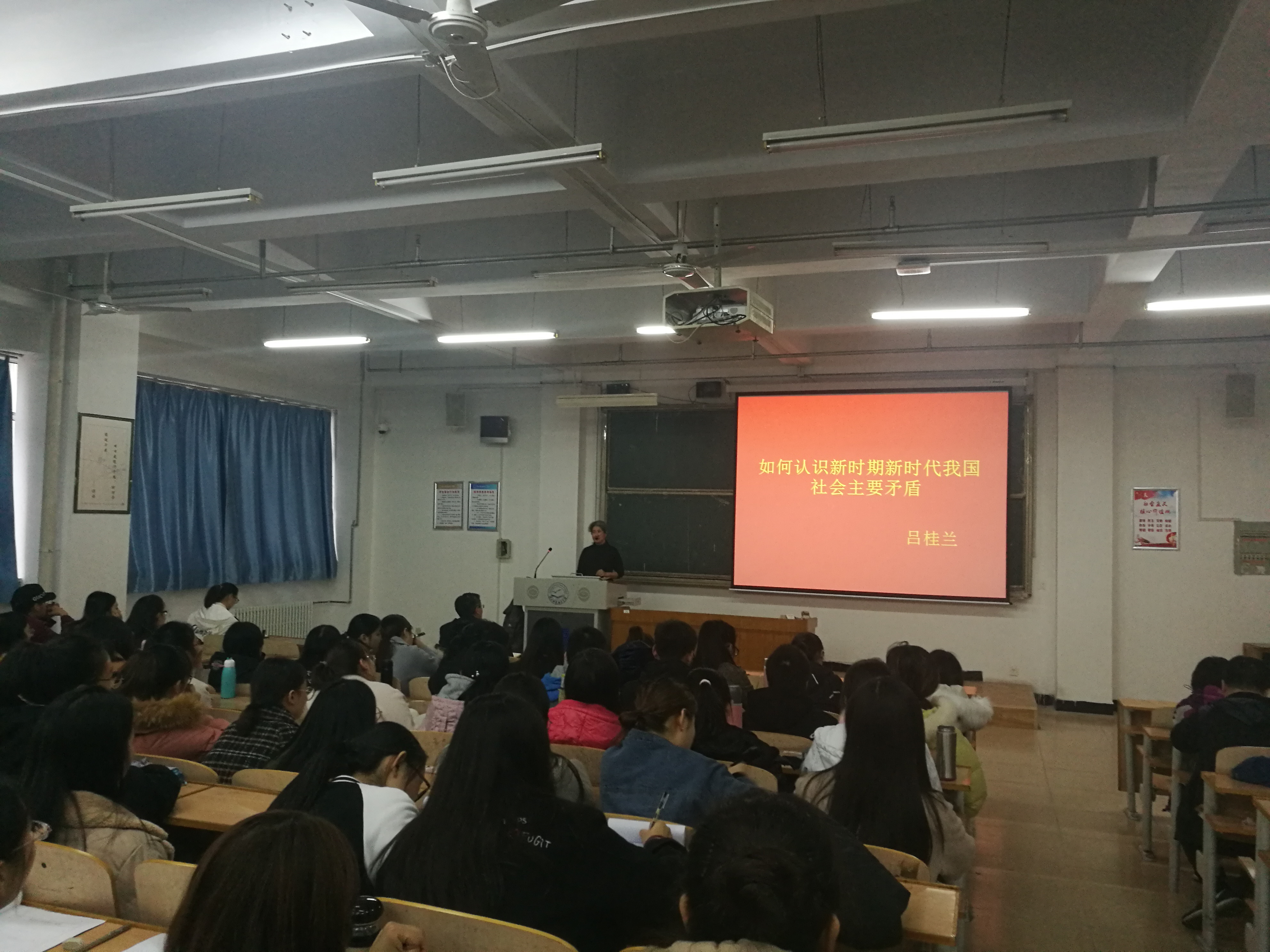 吕桂兰老师以如何认识新时期新时代我国社会主要矛盾为主题,从寻找道路、目标任务和历史使命等方面深入浅出的分析了新时期与新时代的区别;运用矛盾分析法深刻阐述了新时期新时代我国社会主要矛盾的具体体现;深刻解读了党的十九大报告提出的新时代我国社会主要矛盾已经转化为人民日益增长的美好生活需要和不平衡不充分的发展之间的矛盾,这一重大判断的现实意义;最后,吕桂兰老师勉励澳门十大信誉网赌大全大学生要结合自身的学科优势,在互联网+、大数据、人工智能科技高速发展的时代背景下,抢抓机遇、迎接挑战,将创新精神融入未来朝阳产业中,改善行业发展不平衡不充分的现状,为实现人民对美好生活的向往而努力奋斗,把报效祖国、造福人民、建功立业作为自己人生的崇高理想。