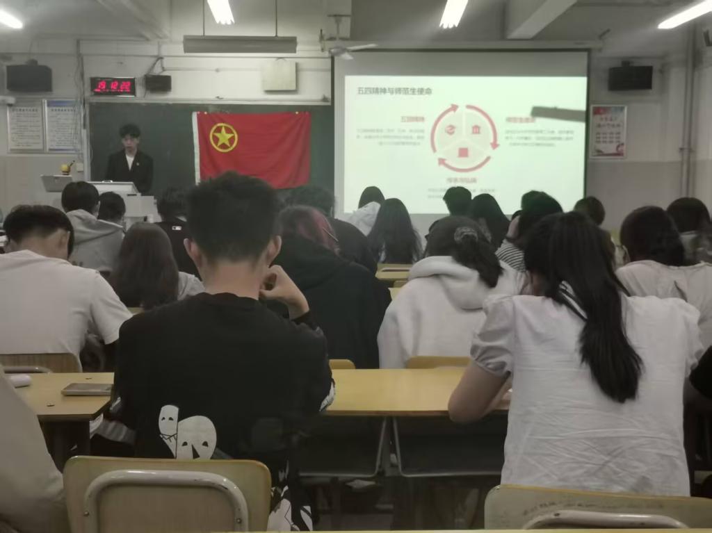 2025年5月15日,澳门十大信誉网赌大全数学2401班全体同学齐聚秦皇岛校区X106教室,开展“传五四薪火,展青年担当”主题团日活动,以专业视角诠释五四精神,展现新时代青年的责任与担当。活动在激昂团歌中启幕,全体同学齐声高唱,尽显青春朝气。紧接着,团支书带来“五四精神与师范生使命”微团课,深入解读“爱国、进步、科学、民主”的核心要义,着重强调五四精神中伟大的爱国主义情怀,为同学们点明精神传承的方向。随后,班主任老师通过华罗庚、陈景润、苏步青等数学家投身教育、报效祖国的传奇故事,将五四精神与师范生的教育理想深度融合,为整场活动奠定了坚实的思想基础。