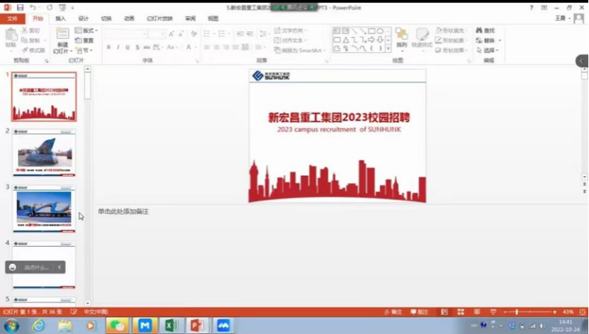 在此次的线上招聘宣讲会上,宣讲人通过PPT的形式对公司进行了详细的介绍。新宏昌重工集团成立于20世纪90年代初,历经二十多年的发展,已成为开放包容、自强不息,具有国际视野的科技创新型企业集团。客户群为中国国内各大重卡制造集团,服务的客户从民营到国企央企到军队,涉及铁路、煤矿、消防、国防、电力、环卫、高速公路、建设工程等范畴。市场从中国已经扩展到东南亚、中亚、东欧、非洲等世界三十几个国家和地区。“宏昌天马”和新宏昌SUNHUNK品牌享誉国内外。