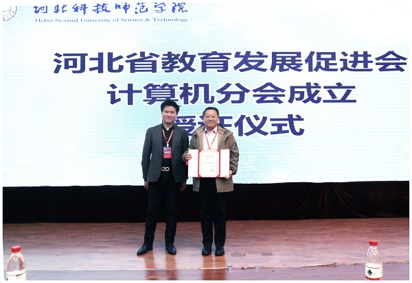 会上,张书华副会长授权成立河北省教育发展促进会计算机分会,副校长刘荣昌教授为赵立强教授颁发计算机分会会长证书,会长赵立强教授为定州市职业技术教育中心、迁安市职业技术教育中心等来自省内11个地区的12所职教中心授权为分会副会长单位。计算机分会成立职业教育计算机虚拟教研室。
