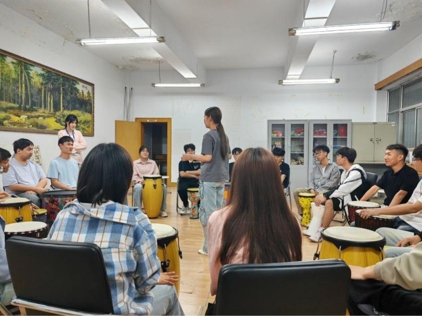 “鼓韵飞扬,悦享人生”鼓圈心理团辅活动中,参与者们通过破冰环节,迅速打破了彼此间的陌生感,在心理鼓圈体验环节,引导师指导学生轮流敲击手中的鼓,通过节奏的变化和团队协作,逐渐感受到内心的平静与力量;在“心灵交流”环节,通过心理游戏让同学们领悟良好的人际关系和沟通能力在传递正性情绪方面的重要性,使同学们获得疏解负性情绪、缓解压力的技巧。
