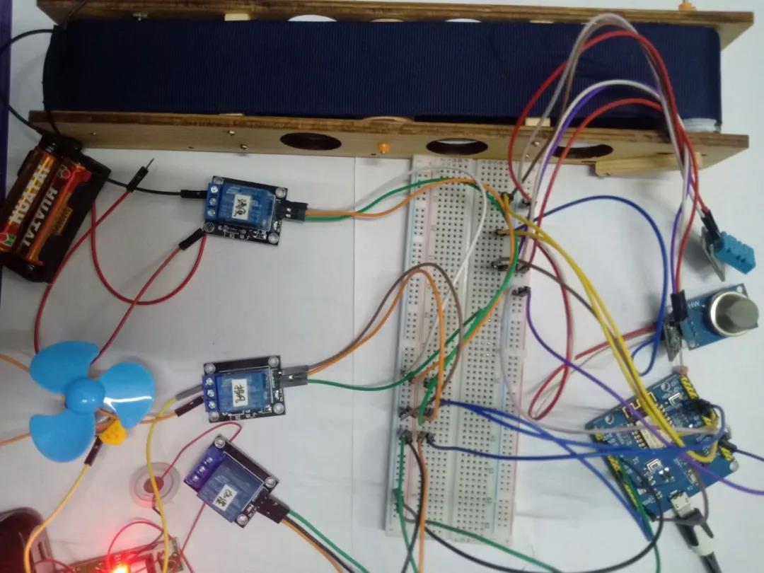 本设计通过TPYBorad V202开发板分别与温湿度传感器、氨气传感器、光敏电阻传感器、排风模块、加湿模块、清便模块通过WiFi模块进行软件和硬件的连接,检测到的数据通过MQTT协议上传到OneNET物联网开放云平台,在云平台上进行数据的展示和相关模块的控制。