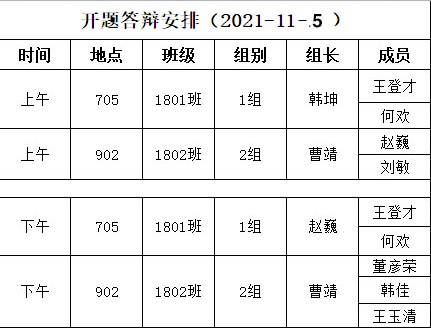 答辩安排: